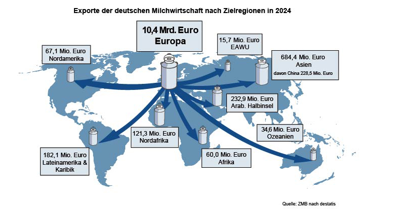 Auf dieser Homepage können sich Interessierte außerdem in einige Eckdaten zum deutschen Export von Milch und Milchprodukten von unseren Mitgliedern und Händlern informieren. So finden Sie in unseren Pressemeldungen die halbjährlichen Informationen zum deutschen Exportgeschehen bei Milch sowie dazu ergänzende statistische Exportdaten.